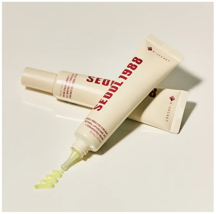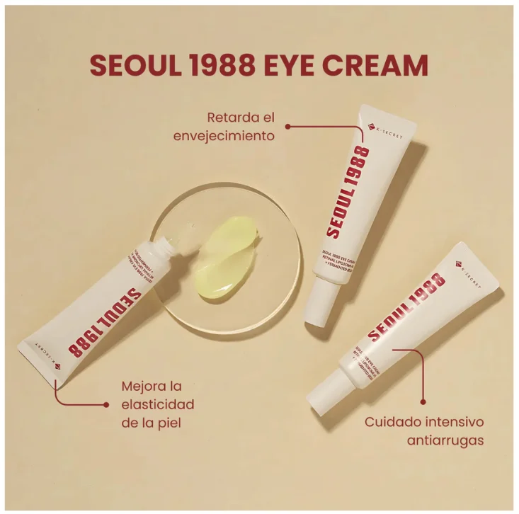 La SEOUL 1988 Eye Cream de K-SECRET es una crema para el contorno de ojos formulada con 4% de liposomas de retinal, junto con extracto de soja fermentada y Lactobacillus, desarrollada para tratar signos visibles del envejecimiento como líneas de expresión, bolsas y pérdida de firmeza. Gracias a su tecnología de encapsulación, el retinal actúa en capas más profundas de la piel y ofrece resultados hasta 11 veces más rápidos que el retinol tradicional, con menor riesgo de irritación.
