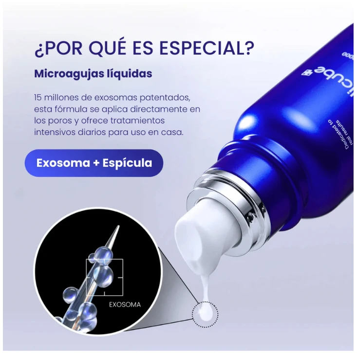 Este suero formulado con 2000 ppm de exosomas ayuda a reducir visiblemente los poros desde la primera aplicación y es apto para el uso diario, incluso para quienes recién comienzan en el cuidado de la piel. Inspirado en la tecnología del microneedling, incorpora un potenciador microscópico con forma de aguja que permite abordar múltiples necesidades cutáneas.