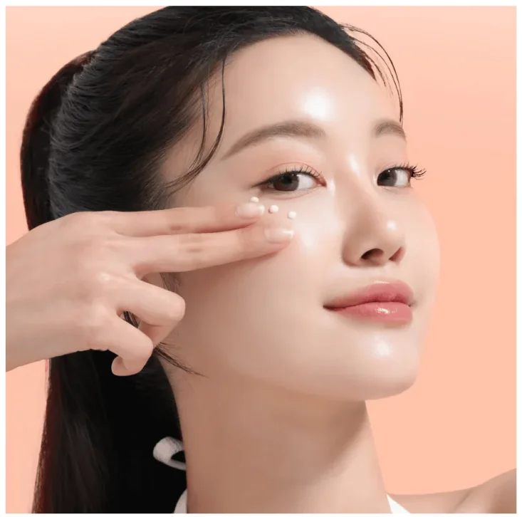 Distribúyelo suavemente en el contorno de ojos, dando ligeros toquecitos con la yema del dedo anular hasta que se absorba por completo.
