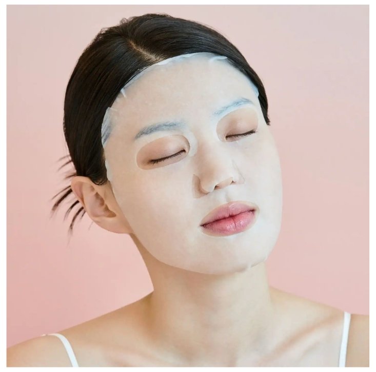 1. Después de limpiar y tonificar el rostro, coloca cuidadosamente la mascarilla sobre la piel, ajustándola al contorno facial.